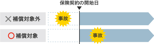 保険契約の開始日より前に発生した事故は補償対象外です。